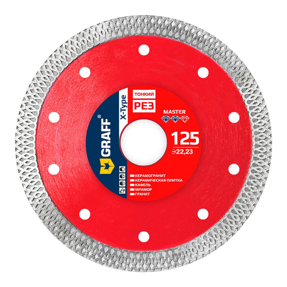 Алмазный диск по керамограниту 125x22,22x10 мм X-type тонкий рез 1,2 мм GRAFF Master