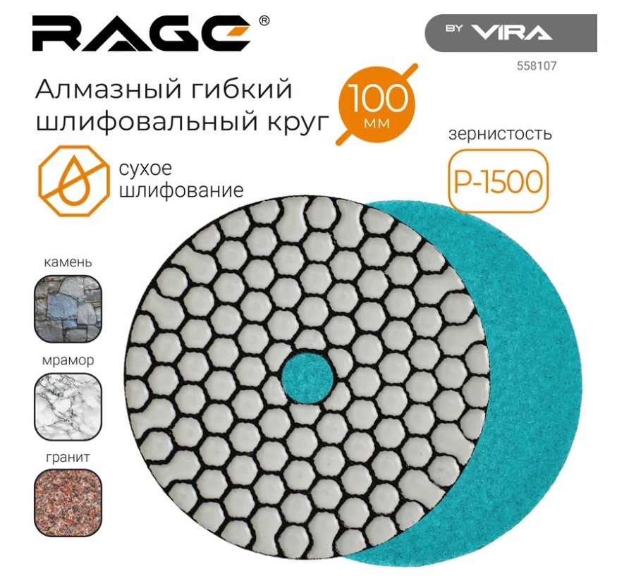 Алмазный гибкий шлифовальный круг Р1500 100 мм RAGE By VIRA (сухое шлифование)