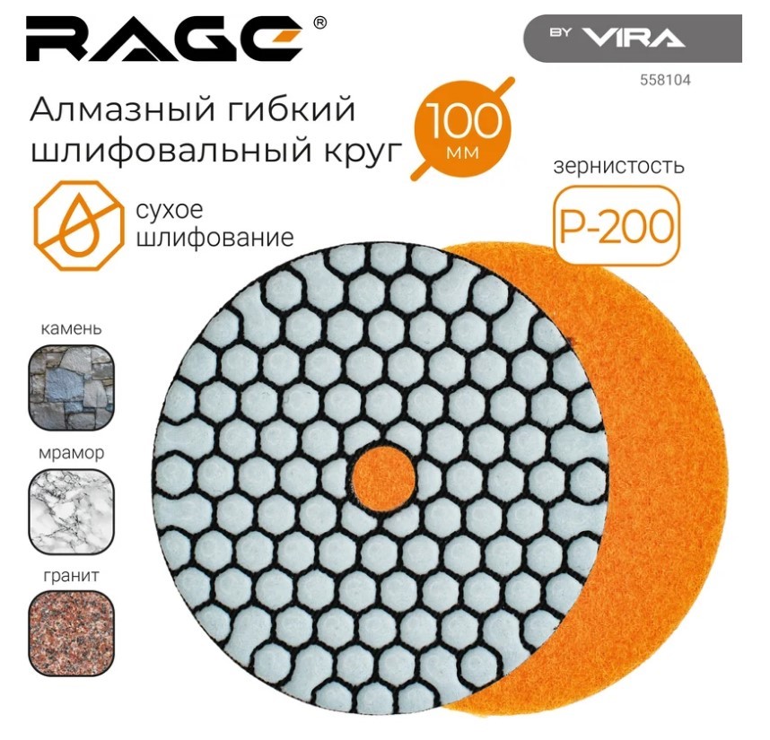 Алмазный гибкий шлифовальный круг Р200 100 мм RAGE By VIRA (сухое шлифование)