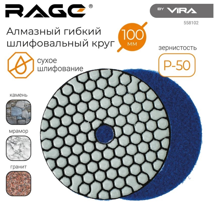 Алмазный гибкий шлифовальный круг Р50 100 мм RAGE By VIRA (сухое шлифование)