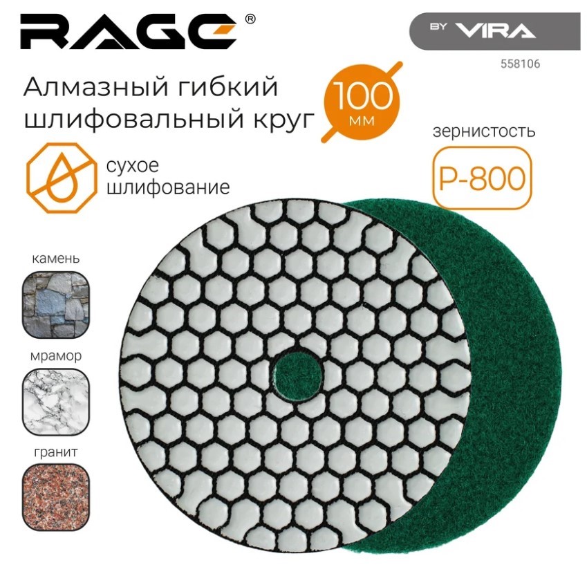 Алмазный гибкий шлифовальный круг Р800 100 мм RAGE By VIRA (сухое шлифование)