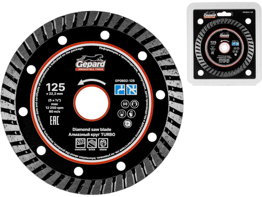 Диск алмазный по бетону 125х22,2 мм универсальный Turbo (сухая резка) GEPARD