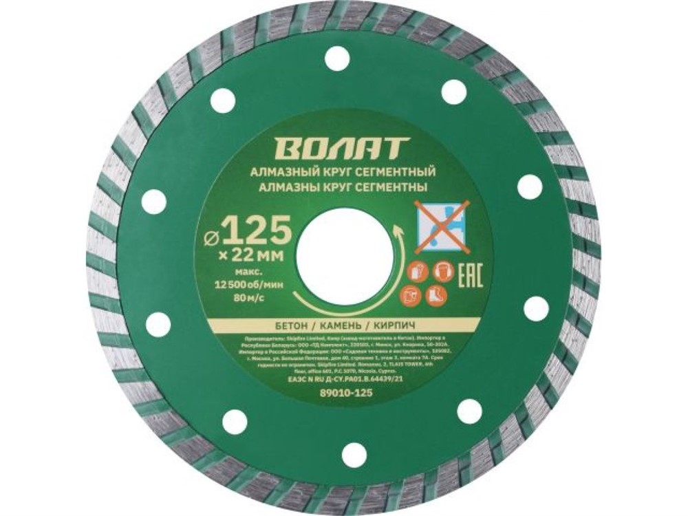 Диск алмазный по бетону 125х22,2 мм турбо, универсальный, ВОЛАТ