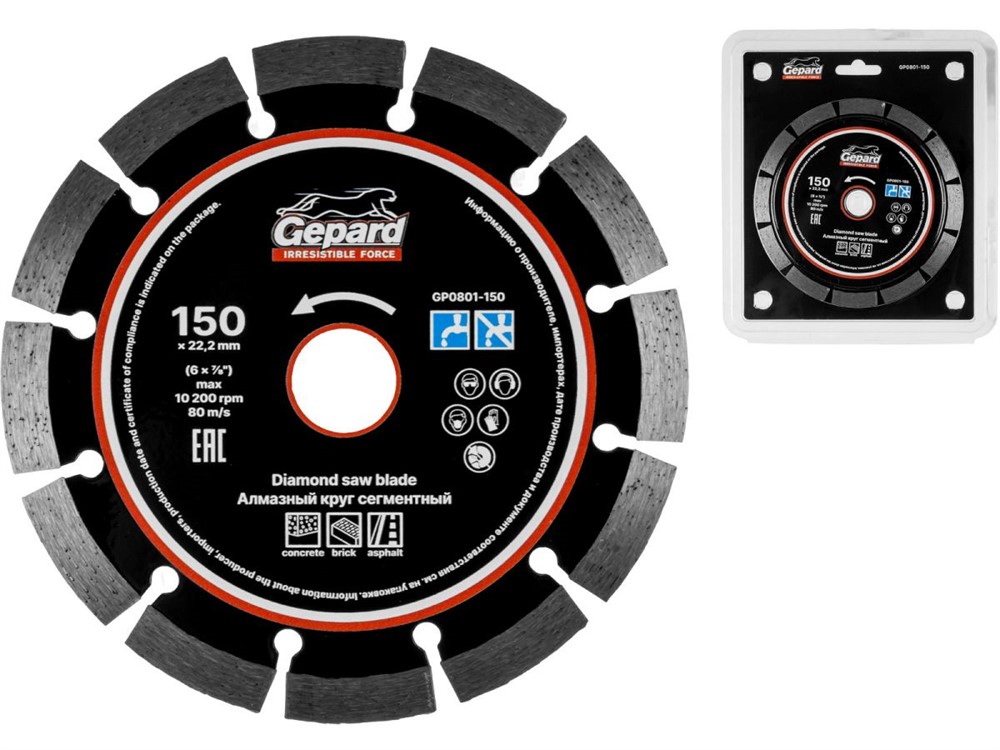 Диск алмазный по бетону 150х22,2 мм универсальный (сухая резка) GEPARD