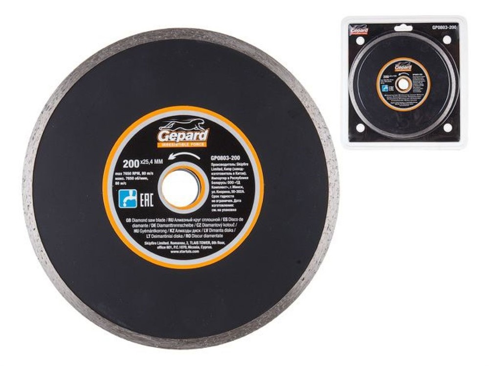 Диск алмазный по керамограниту 200х25.4 мм по сплошной (мокрая резка) GEPARD