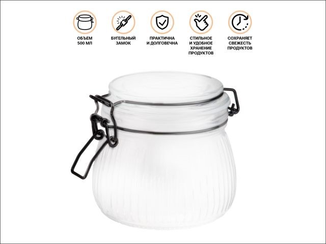 Банка с бугельным замком полностью герметична и не пропускает кислород, поэтому продукция не испортится длительное время.