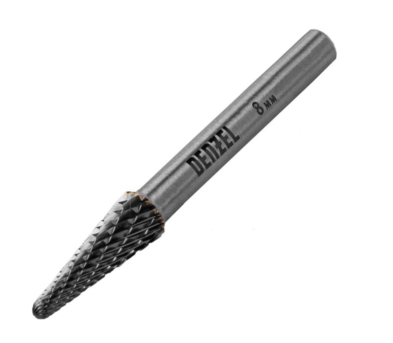Борфреза по металлу твердосплавная, коническая закругленная, тип-L, 8 мм Denzel