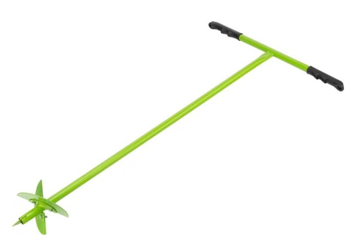 - На одном конце бура имеется Т-образная рукоятка, другой конец выполнен в виде съмных лопастей диаметром 150 или 200 мм.