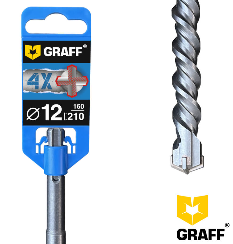 Бур сверло по бетону 12х160х210 мм SDS-plus 4-х кромочное GRAFF