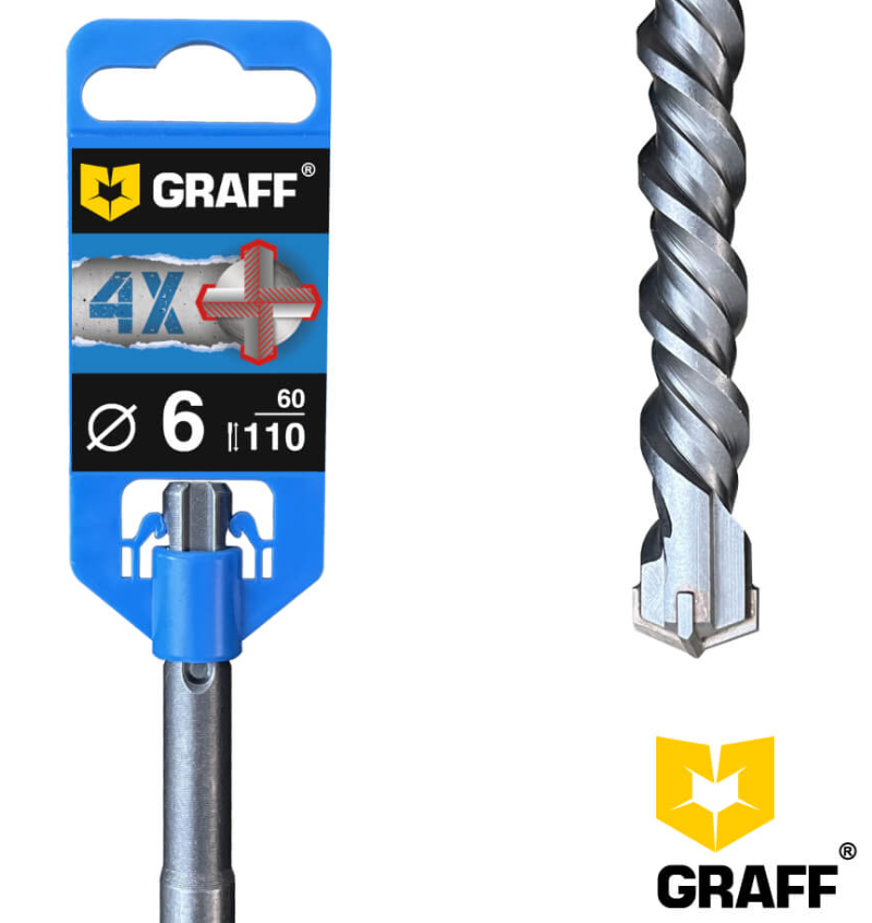 Бур сверло по бетону 6х60х110 мм SDS-plus 4-х кромочное GRAFF