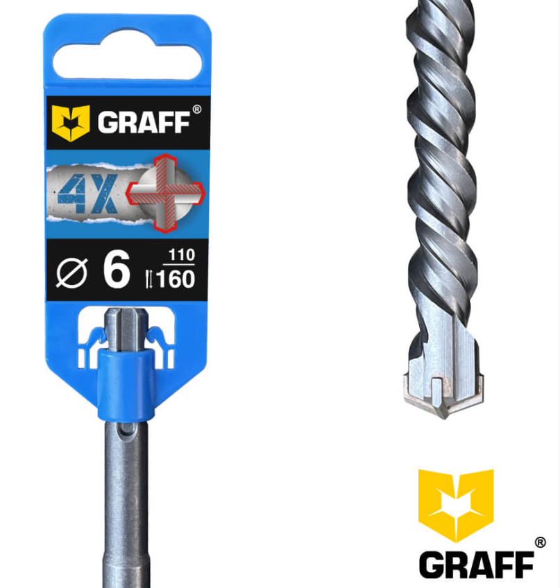 Бур сверло по бетону 6х110х160 мм SDS-plus 4-х кромочное GRAFF
