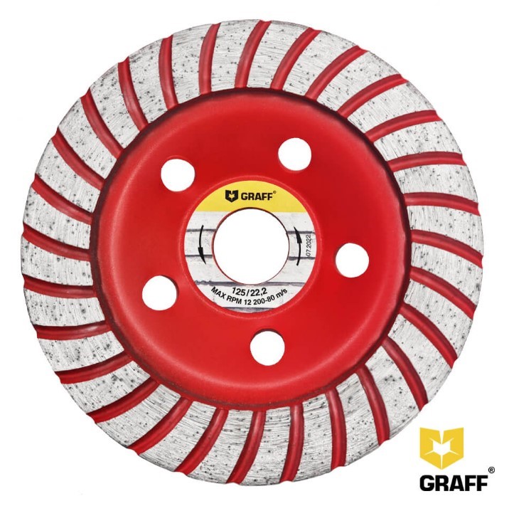 - Чашка алмазная Turbo GRAFF подходит для использования с различными типами шлифовальных машин, включая угловые шлифмашины (УШМ).
