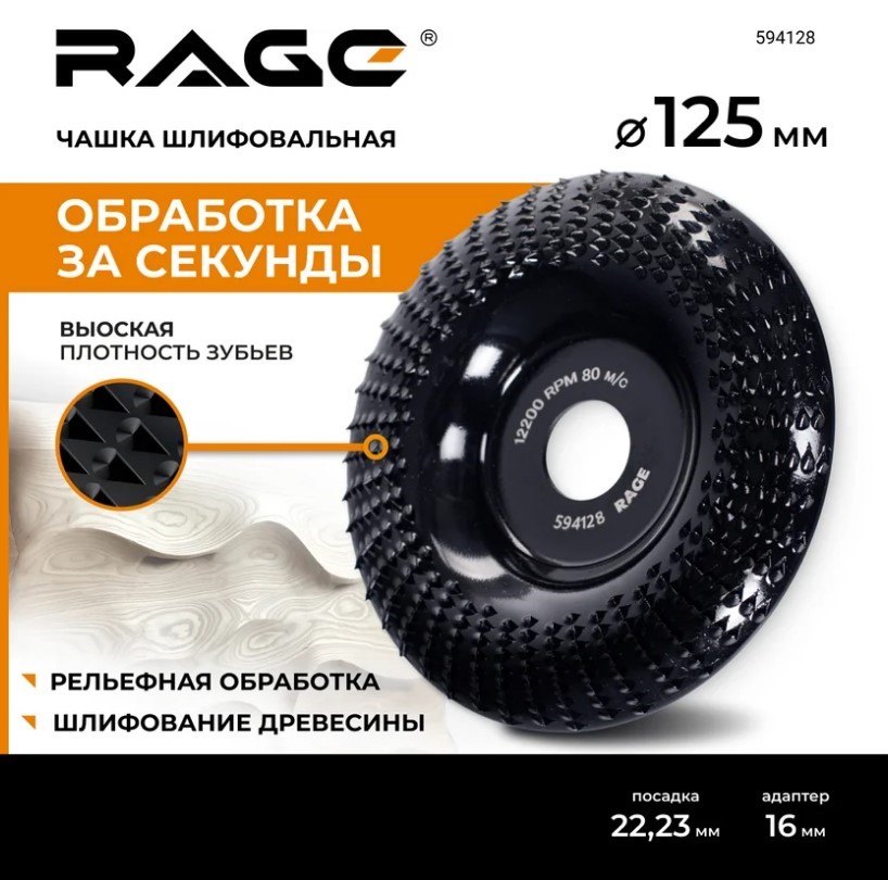 Чашка шлифовальная предназначена для рельефной обработки и шлифования древесины. Высокая плотность режущих острых зубьев обеспечивает быструю и качественную обработку объемных поверхностей. Предназначен для работы на УШМ, также в комплект входит адаптер на 16 мм для установки на малые УШМ.