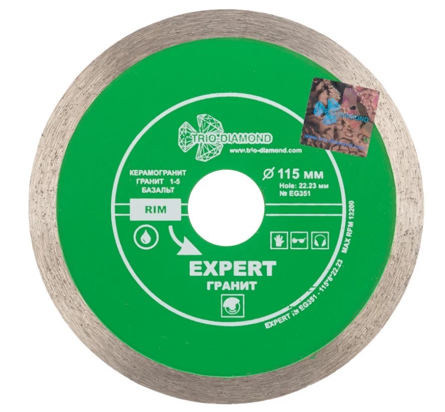 Алмазный диск для керамогранита 115x22,23 мм сплошной Эксперт Гранит Hot press