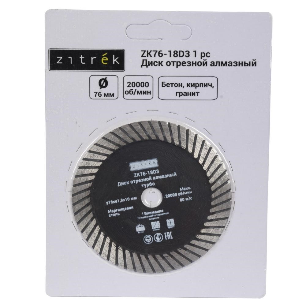 - Диск отрезной алмазный турбо Zitrek ZK76-18D3, 76x1,8x10мм, 1,8мм предназначен для использования с УШМ при отрезных работах по бетону, кирпичу и граниту.