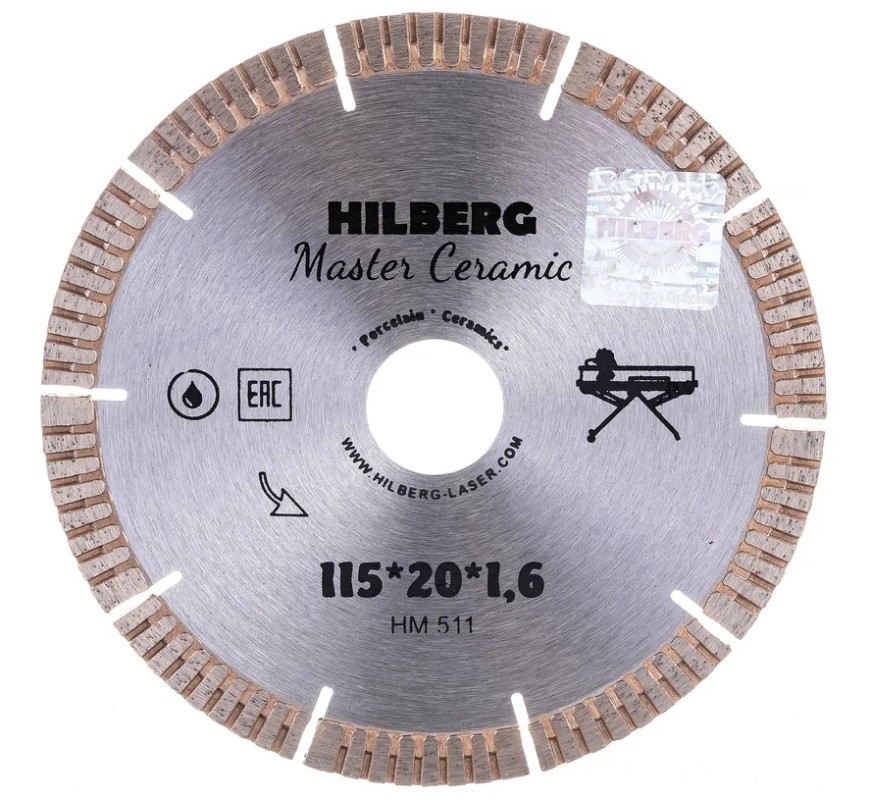 Диск алмазный отрезной 115*20 Hilberg Master Сeramic HM511профессиональный диск для работы по керамике и керамограниту на плиткорезных станках с водяным охлажднением.