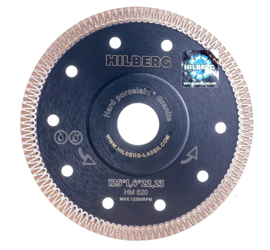 Алмазный диск по керамограниту 125х22,23 ультратонкий 1, 4 мм Hilberg Super Hard Турбо х-тип