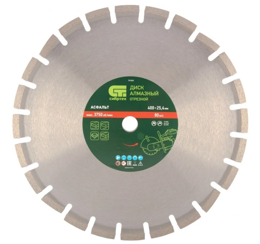 Диск алмазный СИБРТЕХ 731023 предназначен для использования на ручных бензорезах и швонарезчиках. Применяется для резки асфальта, асфальтобетона, свежего бетона и др. материалов.
