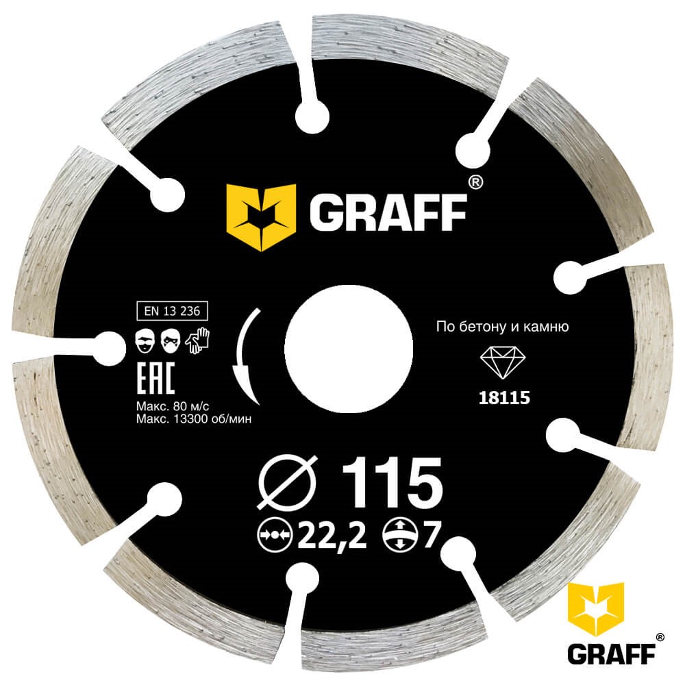 Диск алмазный по бетону 115x22,2x7 мм сегментный, GRAFF Standart