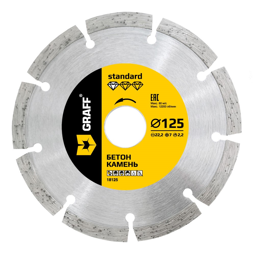 Диск алмазный по бетону 125x22,2x7 мм сегментный, GRAFF Standart