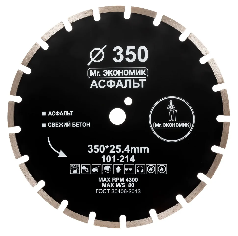 Диск алмазный по бетону асфальту 350х25,4х3,3 сегментный Mr. ЭКОНОМИК