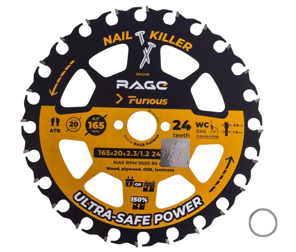 Диск пильный по дереву c гвоздями 165×20/16×24Z Rage by Vira W&N Furious