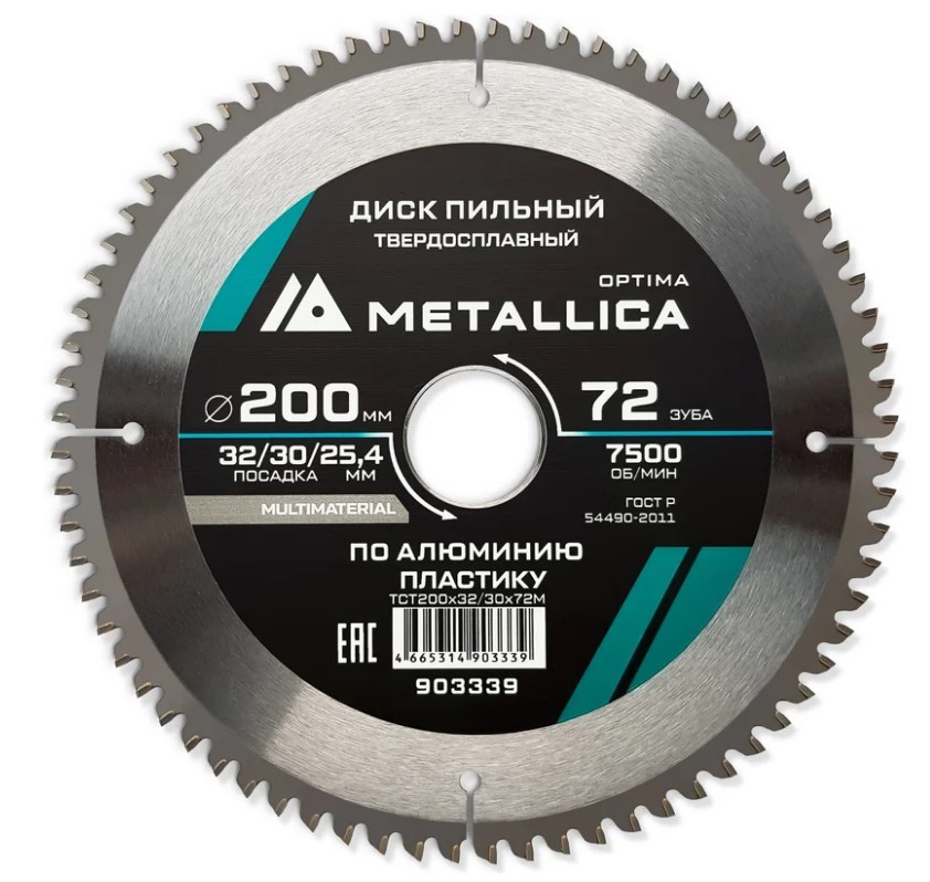 Диск пильный по алюминию и пластику 210×30/20/16 мм 72Z Т=2.6 мм METALLICA Optima