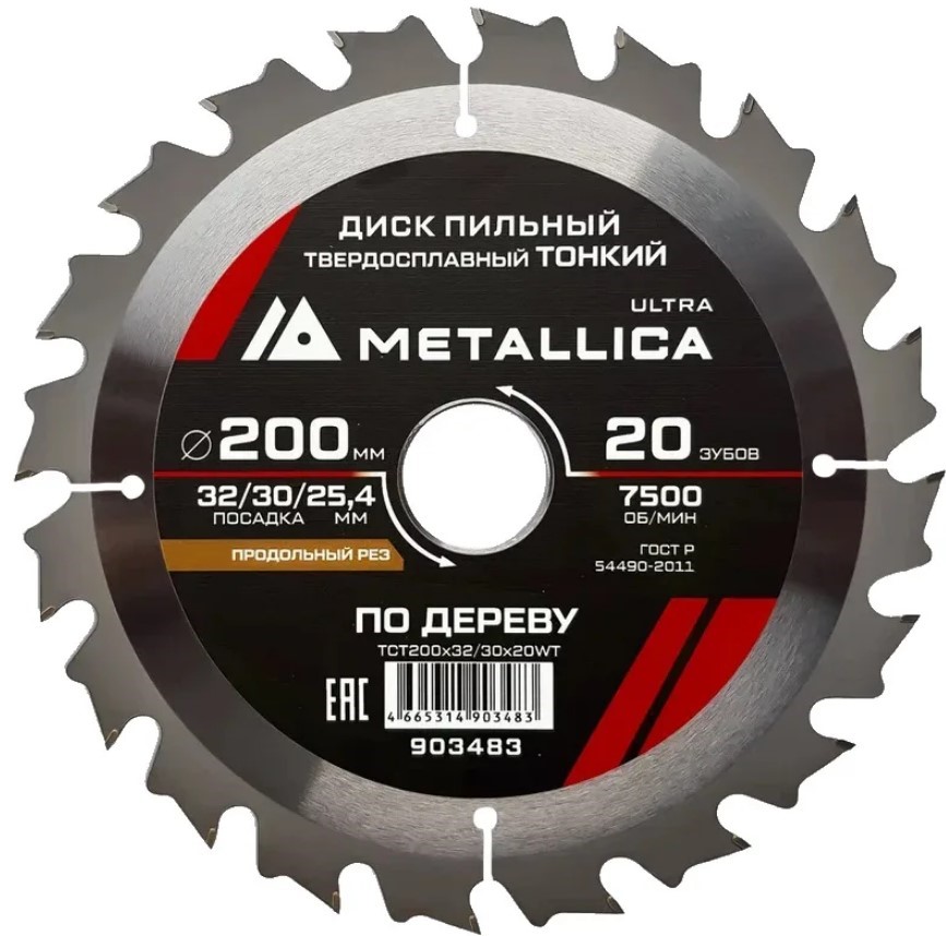 Диск пильный по дереву 200×32/30/25.4x20Z 1,8 мм утонченный METALLICA Ultra