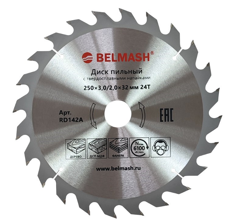 Диск пильный по дереву 250x30х3,2/1,8 мм 24Т BELMASH