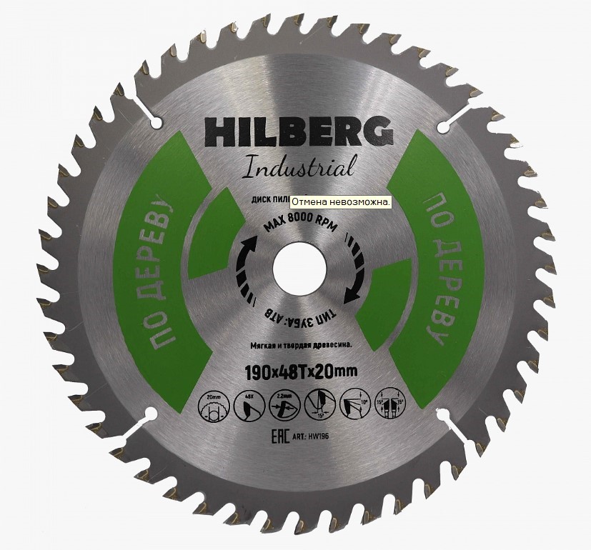 Диск пильный Hilberg Industrial Дерево 190*20*48Т
