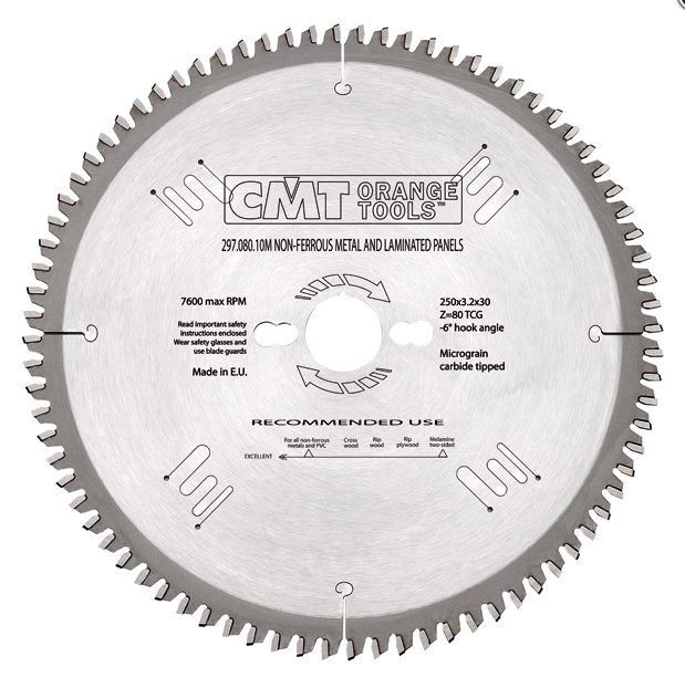 Пильный диск по цветным металлам, алюминию, пластику и ламинированным панелям профессиональной серии от CMT Tools Италия. Модель идеална для применения с ручной циркулярной пилой или УШМ (болгаркой) и подходит для пиления и разрезания труб, формованных деталей и брусков.