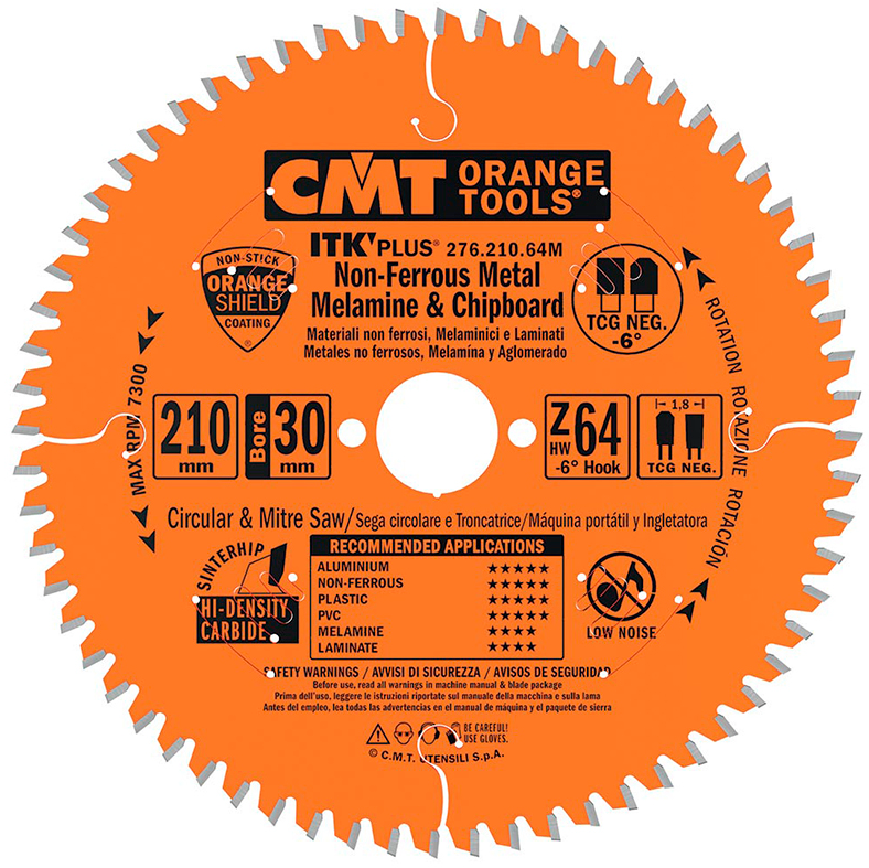 Диск пильный по цветным металлам и композитам 210х30х1,8/1,2 мм TCG -6° 64Т СМТ (Италия)