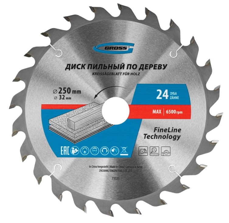 Диск пильный по дереву 250x32/30x3,2мм 24Т Gross