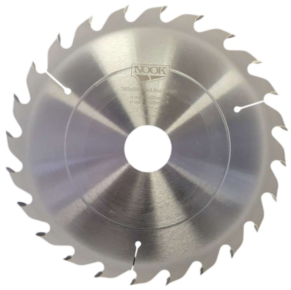 - Дискова пила NOOK предназначена для продольного пиления древесины, характеризуется углом наклона пильного зуба в 25 ° и малым количеством пильных зубов.
