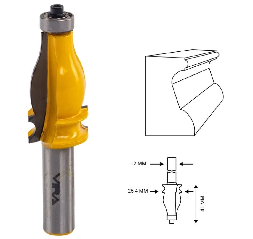 Фреза кромочная фигурная (25.4х41 мм; R3.17 мм; подшипник 12.7 мм, хвостовик 12 мм) VIRA