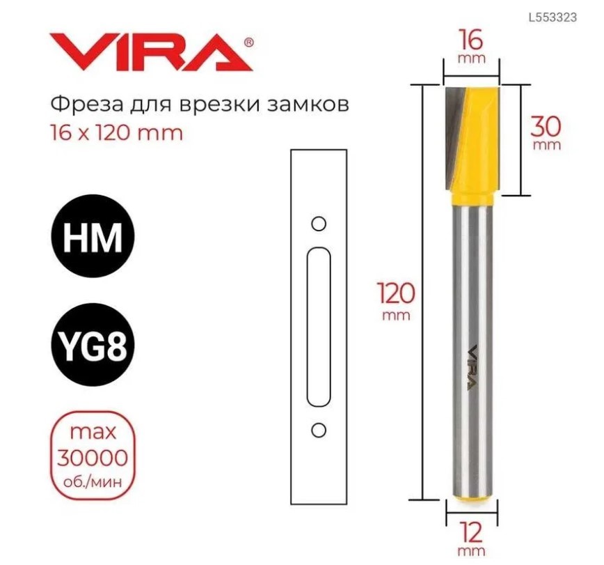 - Фреза VIRA 553323 предназначена для ручных фрезерных машин и фрезерных станков.