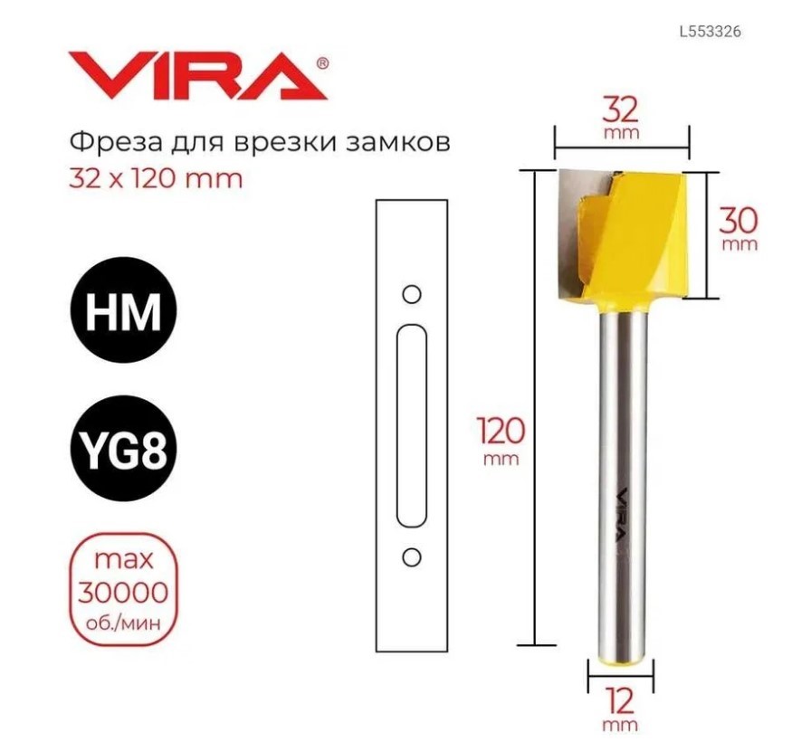 - Фреза VIRA 553324 предназначена для ручных фрезерных машин и фрезерных станков. Применяется для врезки дверных замков.