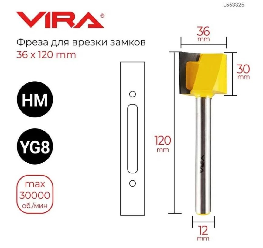 - Фреза VIRA 553324 предназначена для ручных фрезерных машин и фрезерных станков. Применяется для врезки дверных замков.