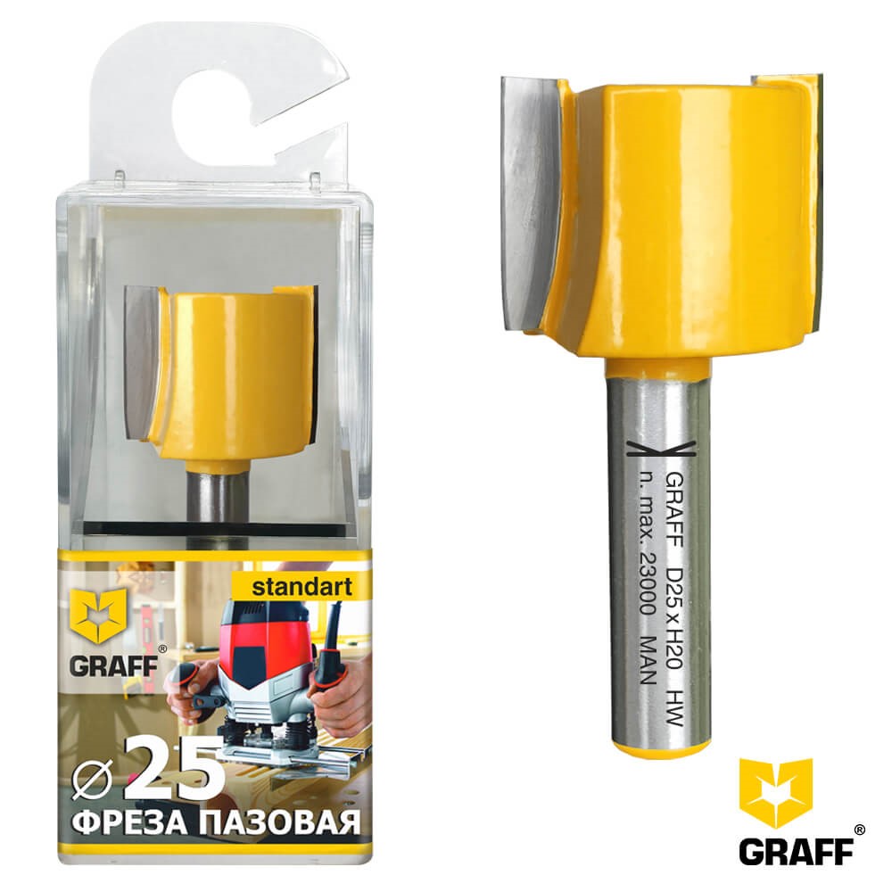Фреза прямая пазовая по дереву 25х20x8 мм GRAFF с цилиндрическим хвостовиком применяется для обработки всех пород дерева.