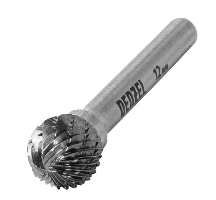 Борфреза по металлу твердосплавная, шарообразная, тип-D, 12 мм Denzel