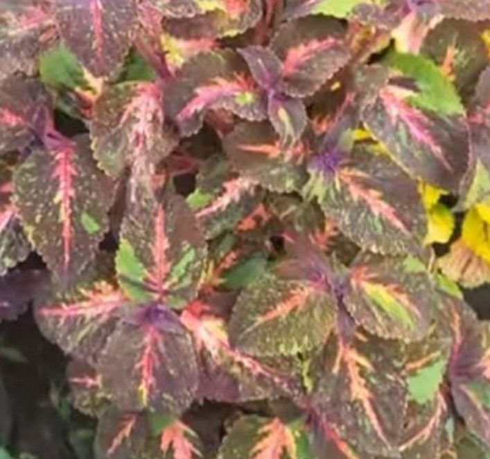 Колеус "Извержение Вулкана" – декоративное травянистое растение высотой до 60 см. Листья не большие, многоцветные