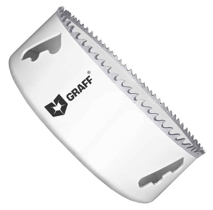 Биметаллическая коронка GRAFF изготовлена из из быстрорежущей стали с содержанием кобальта 8% в режущей кромке, такой сплав обеспечивает высокую износостойкость и эффективную работу. Специальная конфигурация и развод зубьев обеспечивают быстрое удаление стружки и более чистый рез.