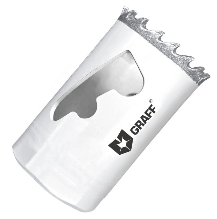 Биметаллическая коронка GRAFF изготовлена из из быстрорежущей стали с содержанием кобальта 8% в режущей кромке, такой сплав обеспечивает высокую износостойкость и эффективную работу. Специальная конфигурация и развод зубьев обеспечивают быстрое удаление стружки и более чистый рез.