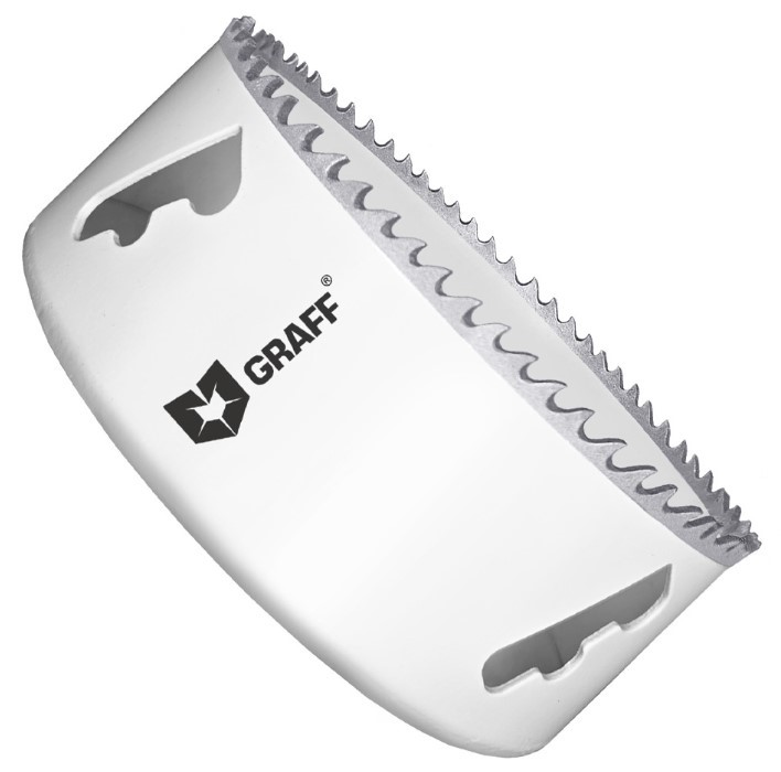 Биметаллическая коронка GRAFF изготовлена из из быстрорежущей стали с содержанием кобальта 8% в режущей кромке, такой сплав обеспечивает высокую износостойкость и эффективную работу. Специальная конфигурация и развод зубьев обеспечивают быстрое удаление стружки и более чистый рез.