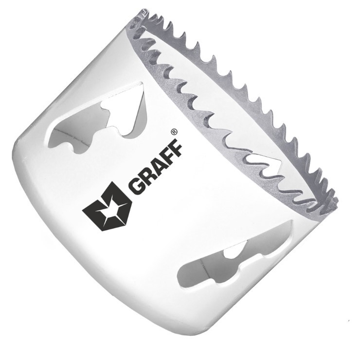 Биметаллическая коронка GRAFF изготовлена из из быстрорежущей стали с содержанием кобальта 8% в режущей кромке, такой сплав обеспечивает высокую износостойкость и эффективную работу. Специальная конфигурация и развод зубьев обеспечивают быстрое удаление стружки и более чистый рез.