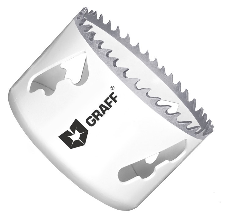 Биметаллическая коронка GRAFF изготовлена из из быстрорежущей стали с содержанием кобальта 8% в режущей кромке, такой сплав обеспечивает высокую износостойкость и эффективную работу. Специальная конфигурация и развод зубьев обеспечивают быстрое удаление стружки и более чистый рез.