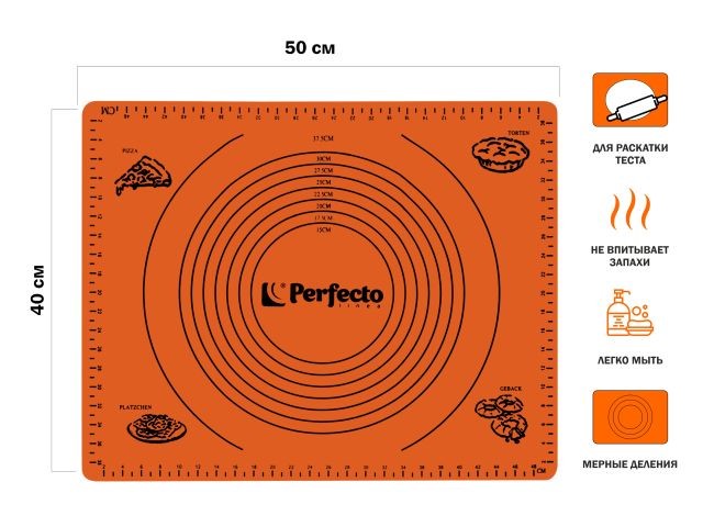 Коврик для теста с мерными делениями, силиконовый, 50х40 см, серия Handy (Хенди), PERFECTO LINEA