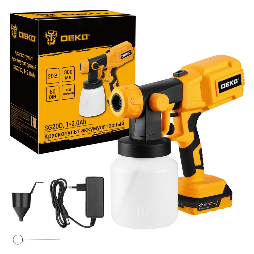 Краскопульт аккумуляторный 20В, 800мл, АКБ 2 А/ч DEKO SG20D