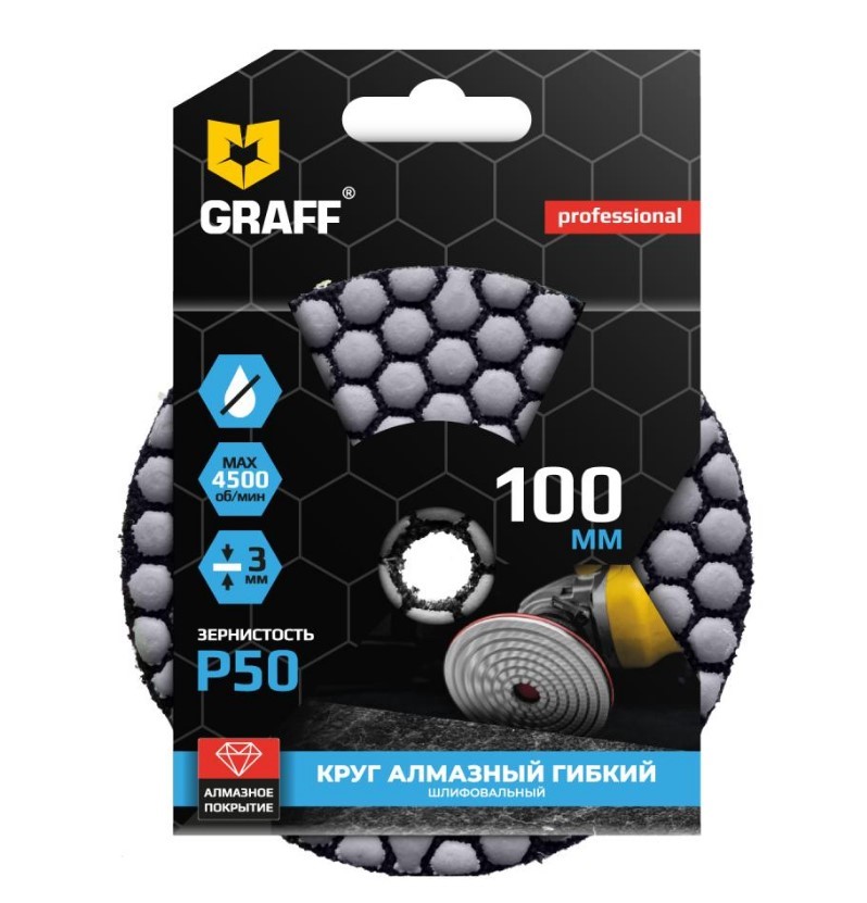 Круг гибкий алмазный шлифовальный 100 мм P50 GRAFF
