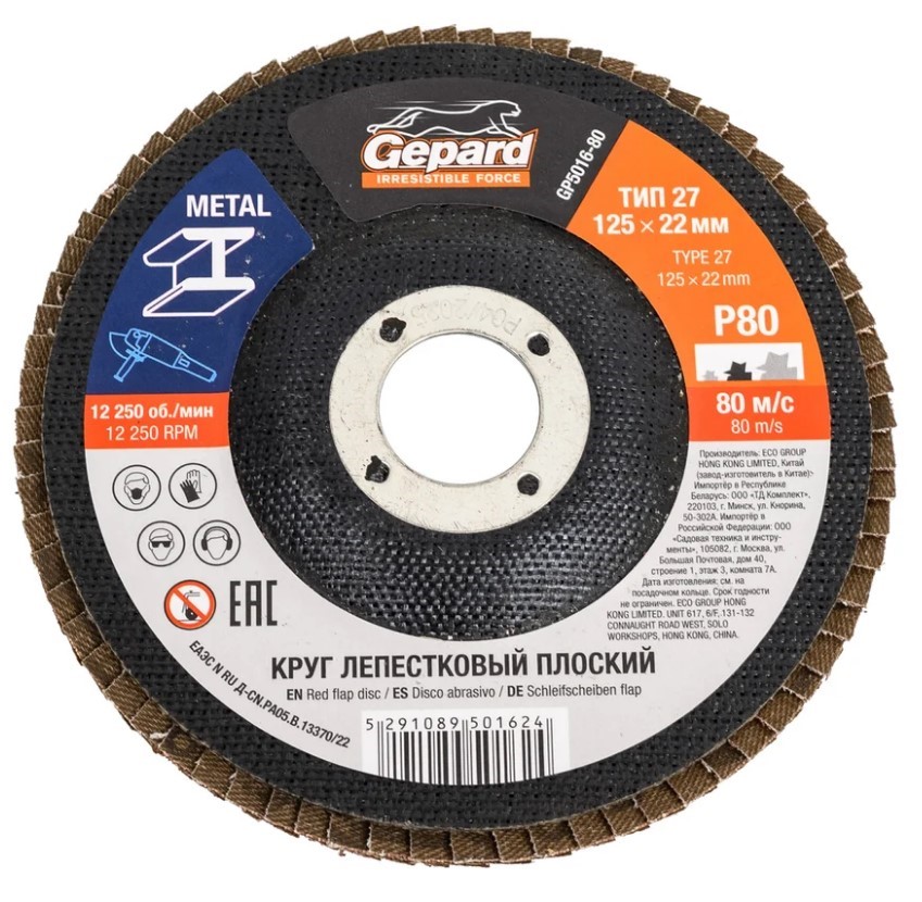 Круг лепестковый 125х22мм P80 плоский КЛТ-1 GEPARD